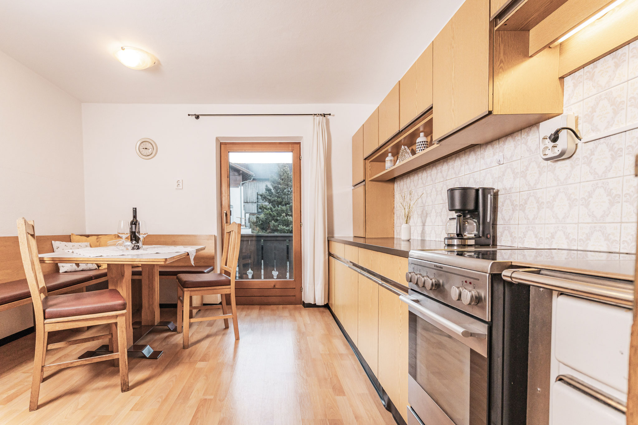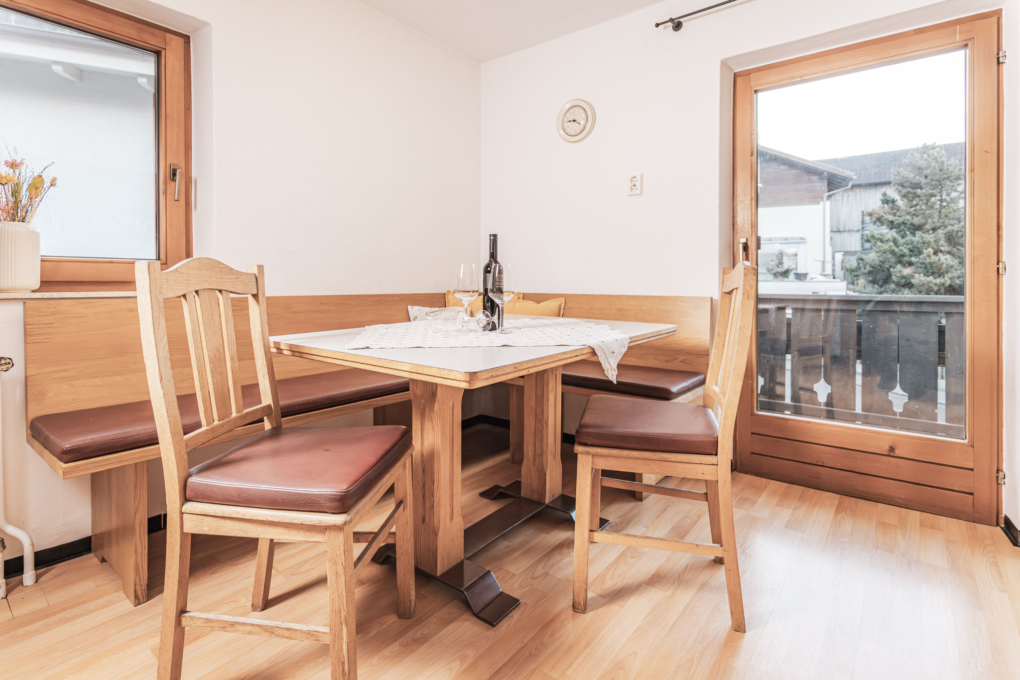 Am gemütlichen Esstisch ist Platz für die ganze Familie – perfekt für Frühstück in der Morgensonne oder ein entspanntes Abendessen nach einem erlebnisreichen Tag.