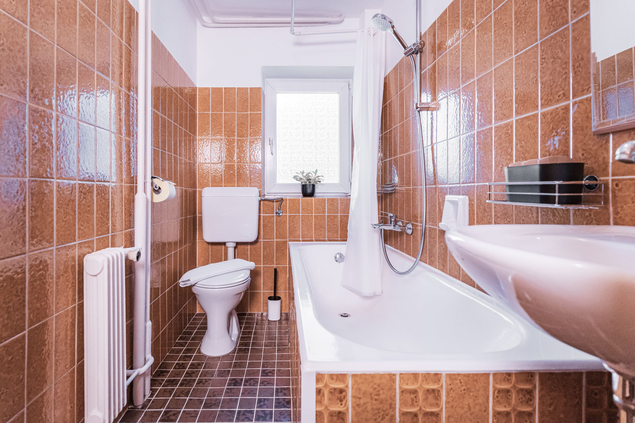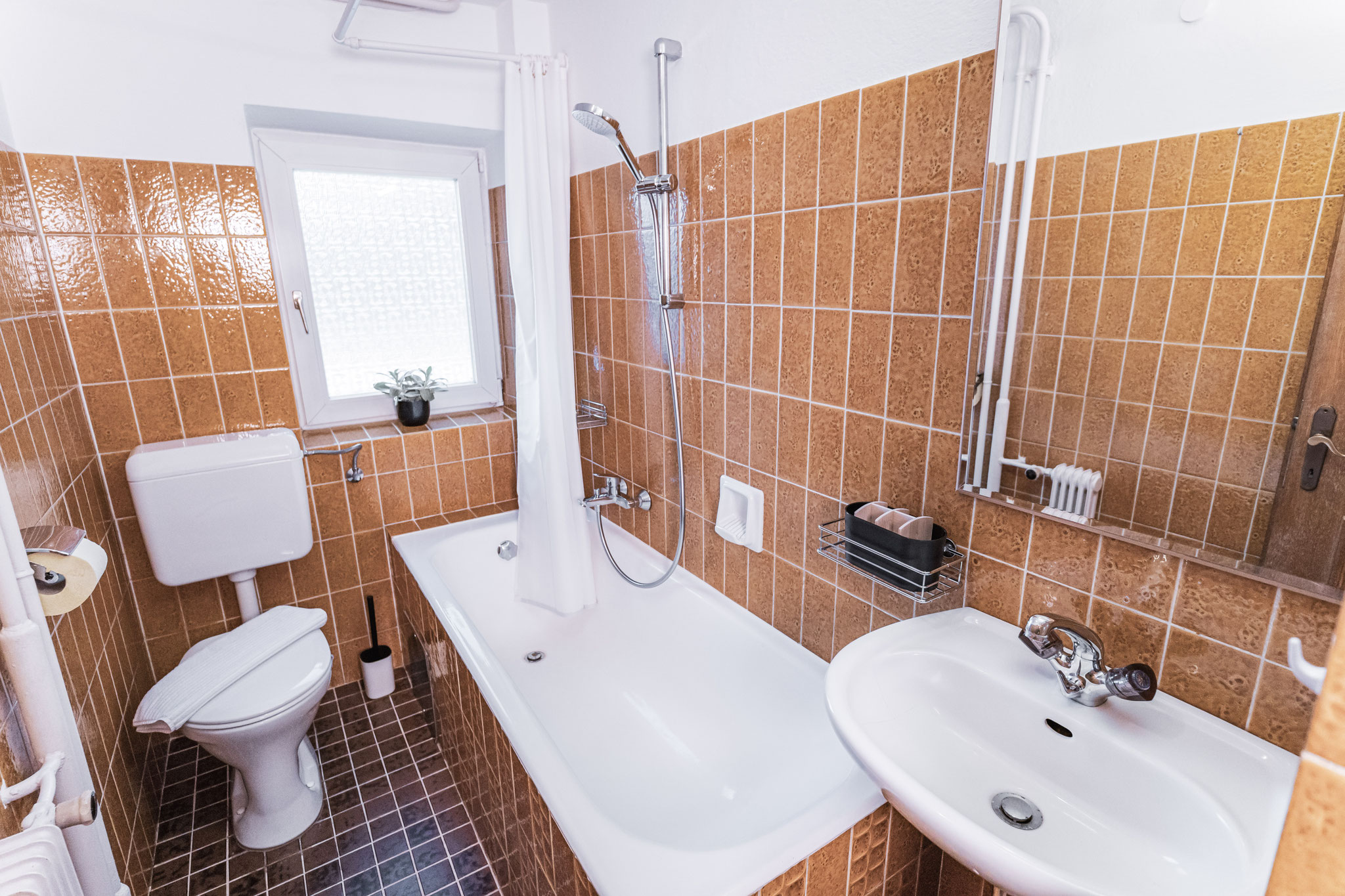 Unser kleines, aber feines Bad bietet alles was du brauchst auf kompaktem Raum – funktional, gepflegt und zum Wohlfühlen.